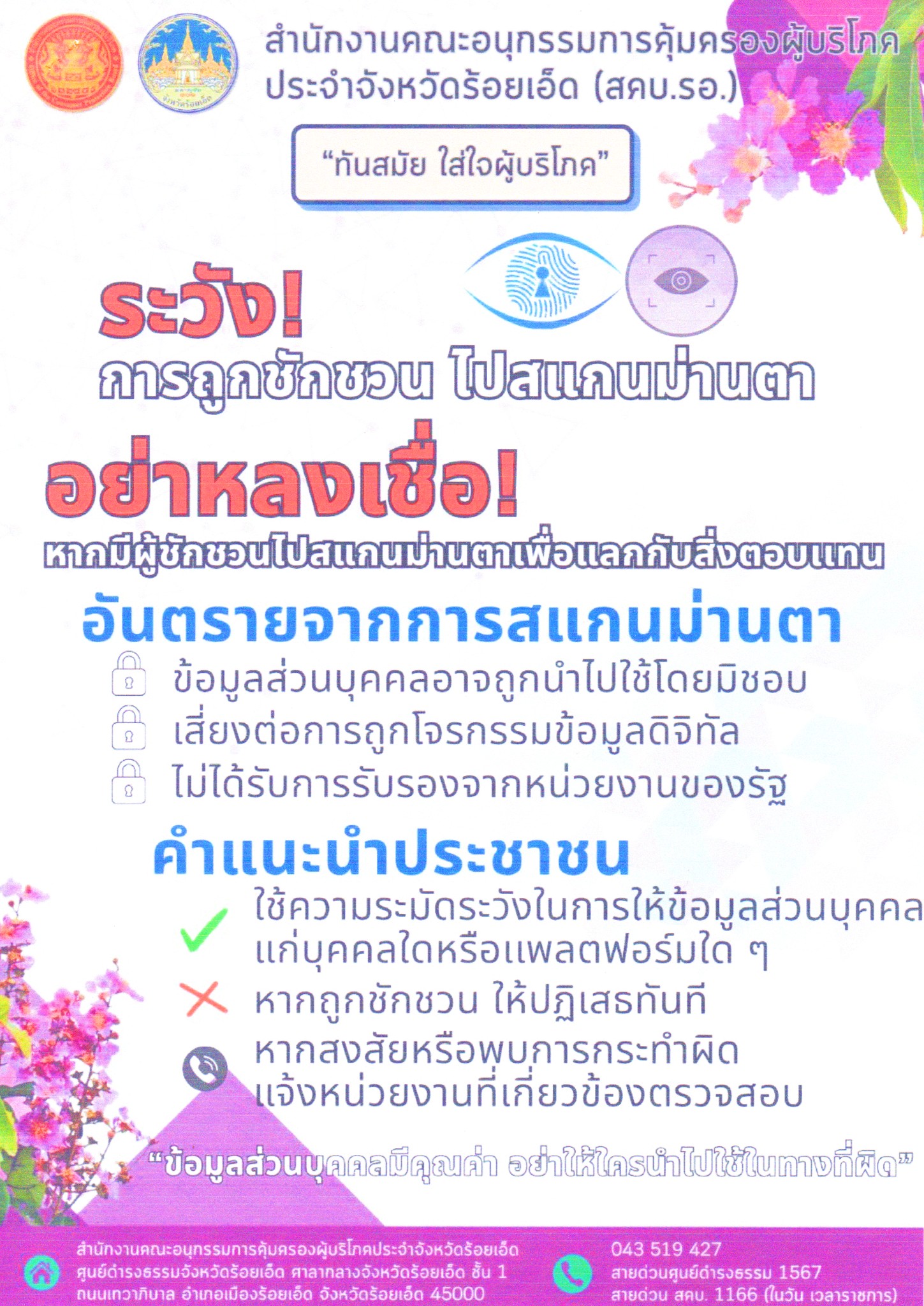 รายละเอียด : ขอความอนุเคราะห์ประชาสัมพันธ์เชิญชวนประชาชนลงทะเบียนในแอปพลิเคชั่น word ????⁉️ประกาศ แจ้งเตือน จาก สำนักงานคณะอนุกรรมการคุ้มครองผู้บริโภค ประจำจังหวัดร้อยเอ็ด (สคบ.รอ)